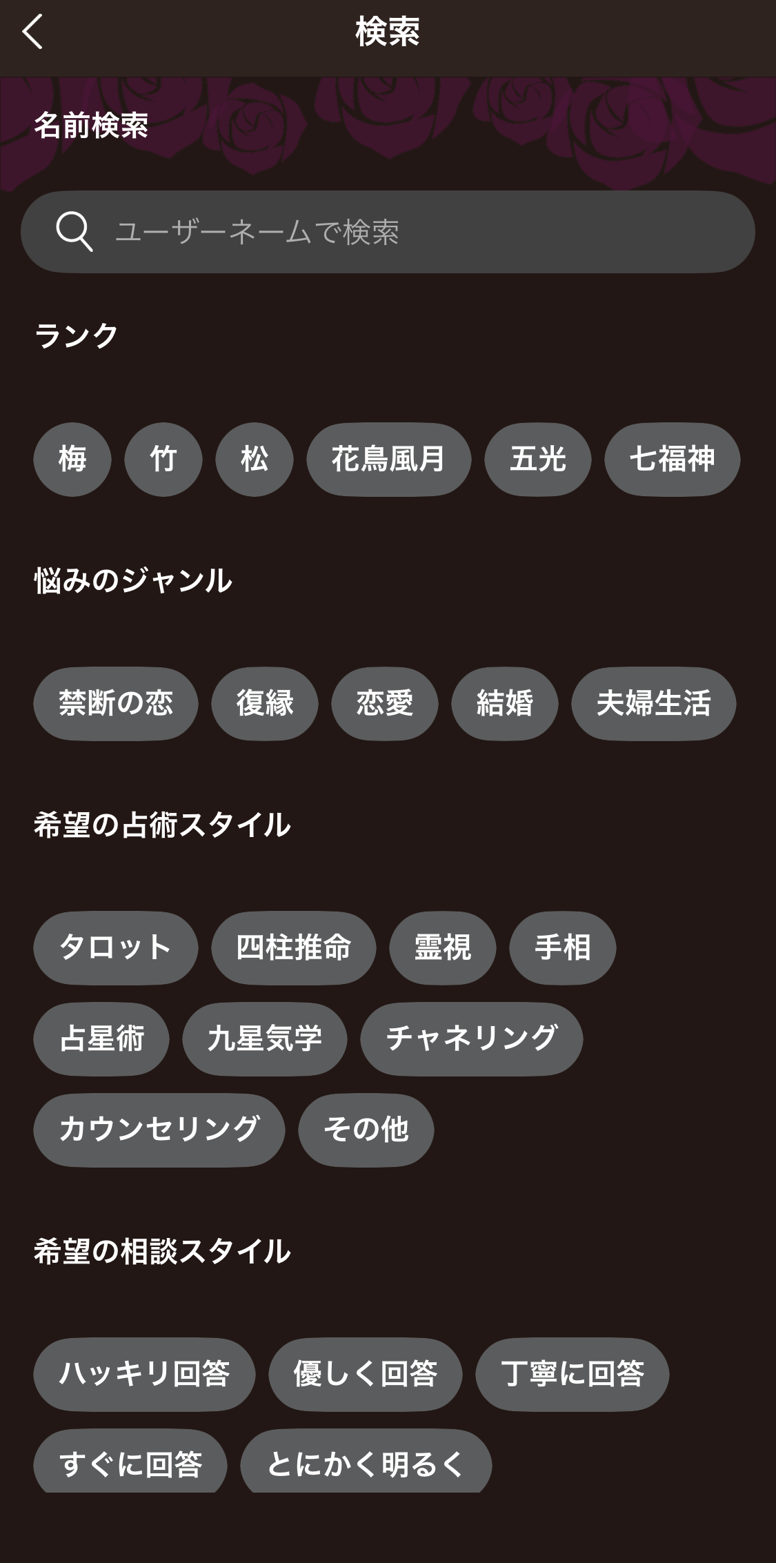 ランクやお悩みのジャンルなどを絞り込んで占い師さんの検索にもぜひご活用くださいませ🤗