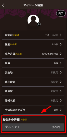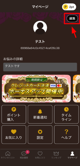 マイページの編集方法は、右上の「編集」をタップしていただくと入力欄が表示されます💡